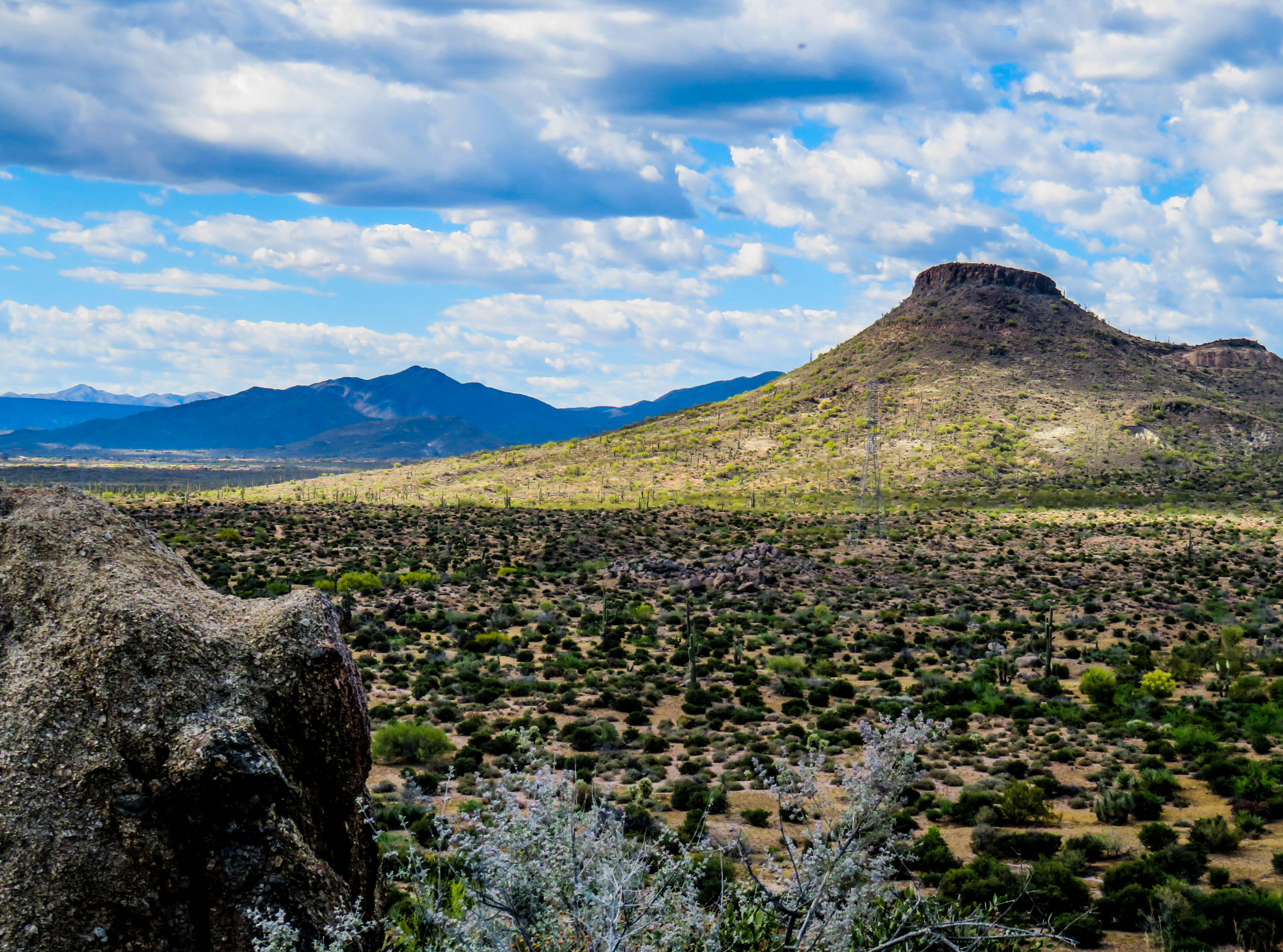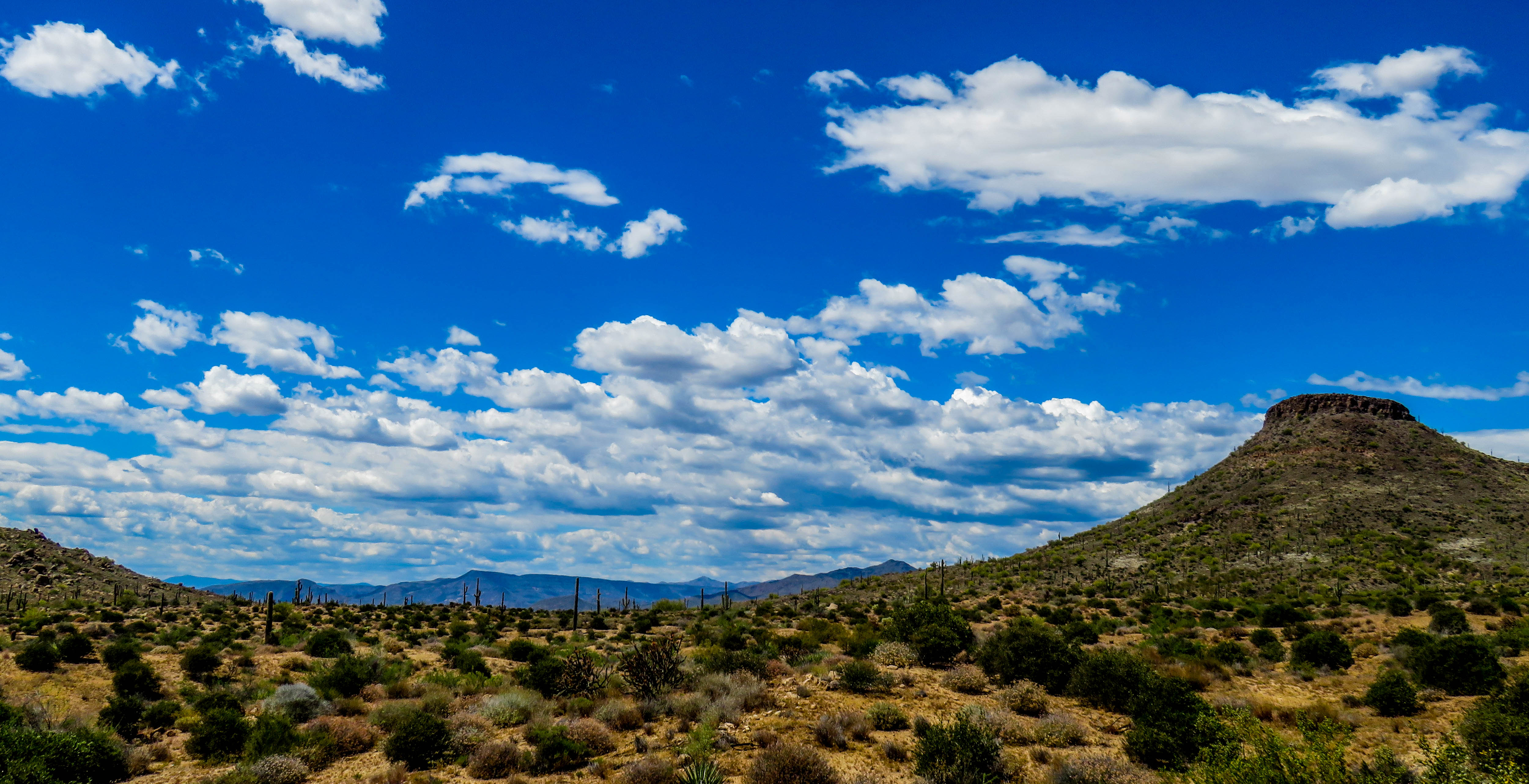 - Traversing Arizona’s Sonoran landscape with mountains in the distance.